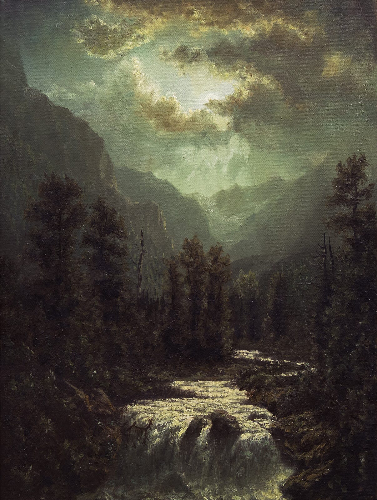 Cascading velocity of midnight waters fell into the ever deepening abyss.